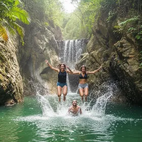 Selva, agua fría y mil risas. Camina, brinca y termina dándote un chapuzón legendario. ¡La cruda se cura con cascadas, comprobado científicamente!